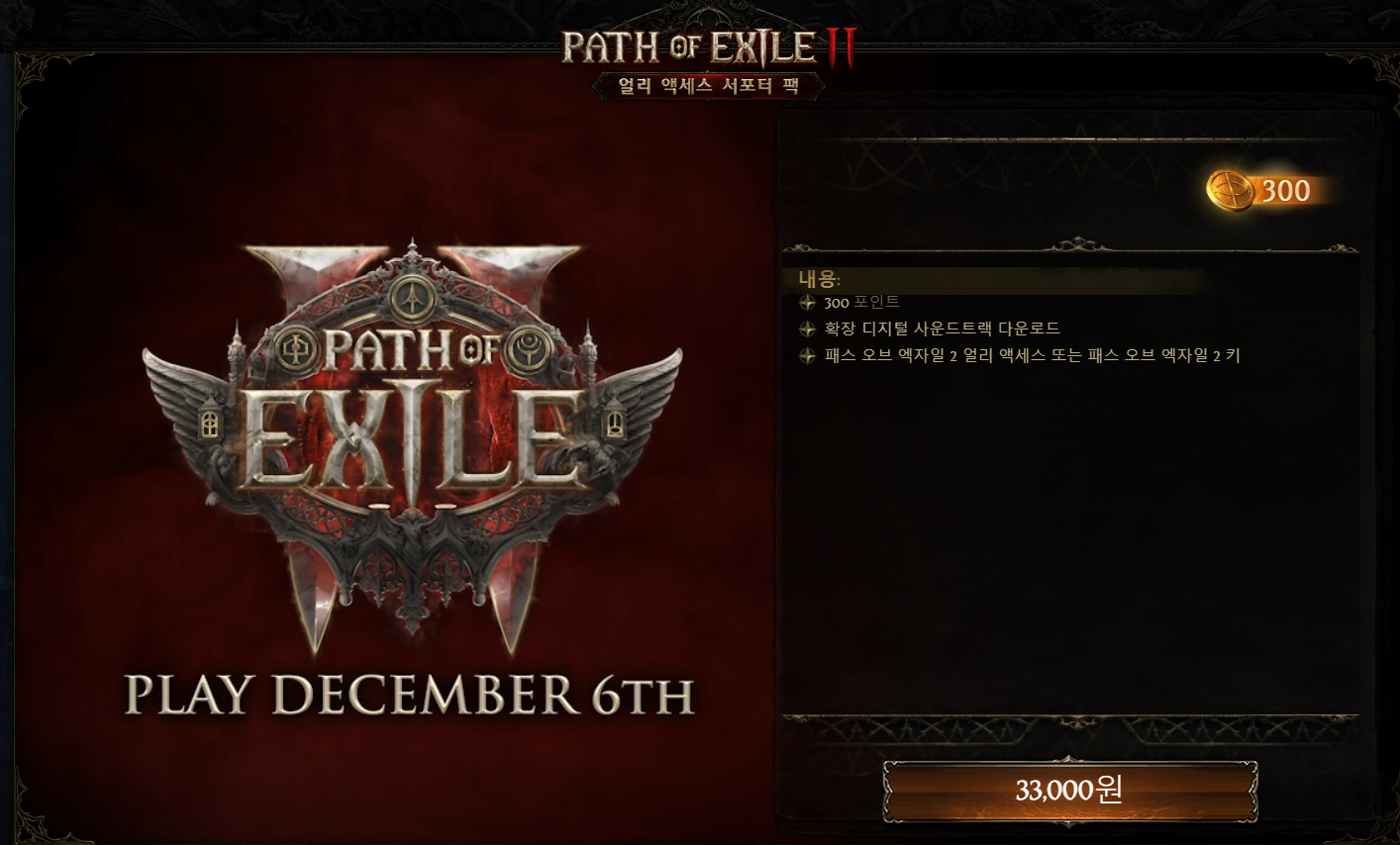 - 기존 PoE1 누적 구매 금액이 528,000원(480달러) 이상인 경우