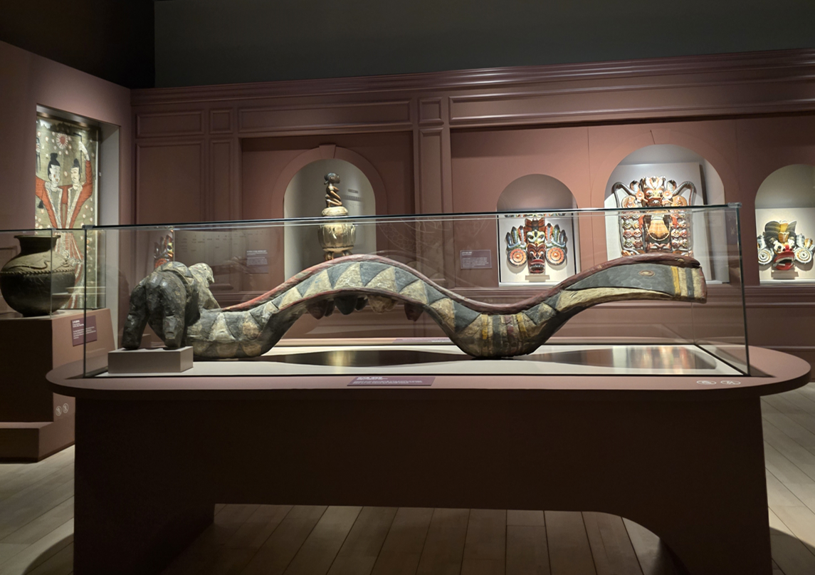 마지막 섹션에서는 뱀이 신성한 존재로 여겨진 이유를 살펴봅니다. 허물을 벗으며 새롭게 태어나는 모습은 재생과 영생을 상징하며, 계절의 순환과도 연결되었죠. 이 섹션에서는 특히 아프리카와 남미 원주민들의 신화 속에서 등장하는 신성한 뱀 이야기가 흥미로웠습니다. 이국적인 색감과 디자인이 돋보이는 작품들이 많아 사진 찍기에도 좋았답니다! 📸