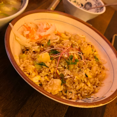 새우 파인애플 볶음밥: 달콤하면서도 짭짤한 맛의 조화가 매력적이에요.