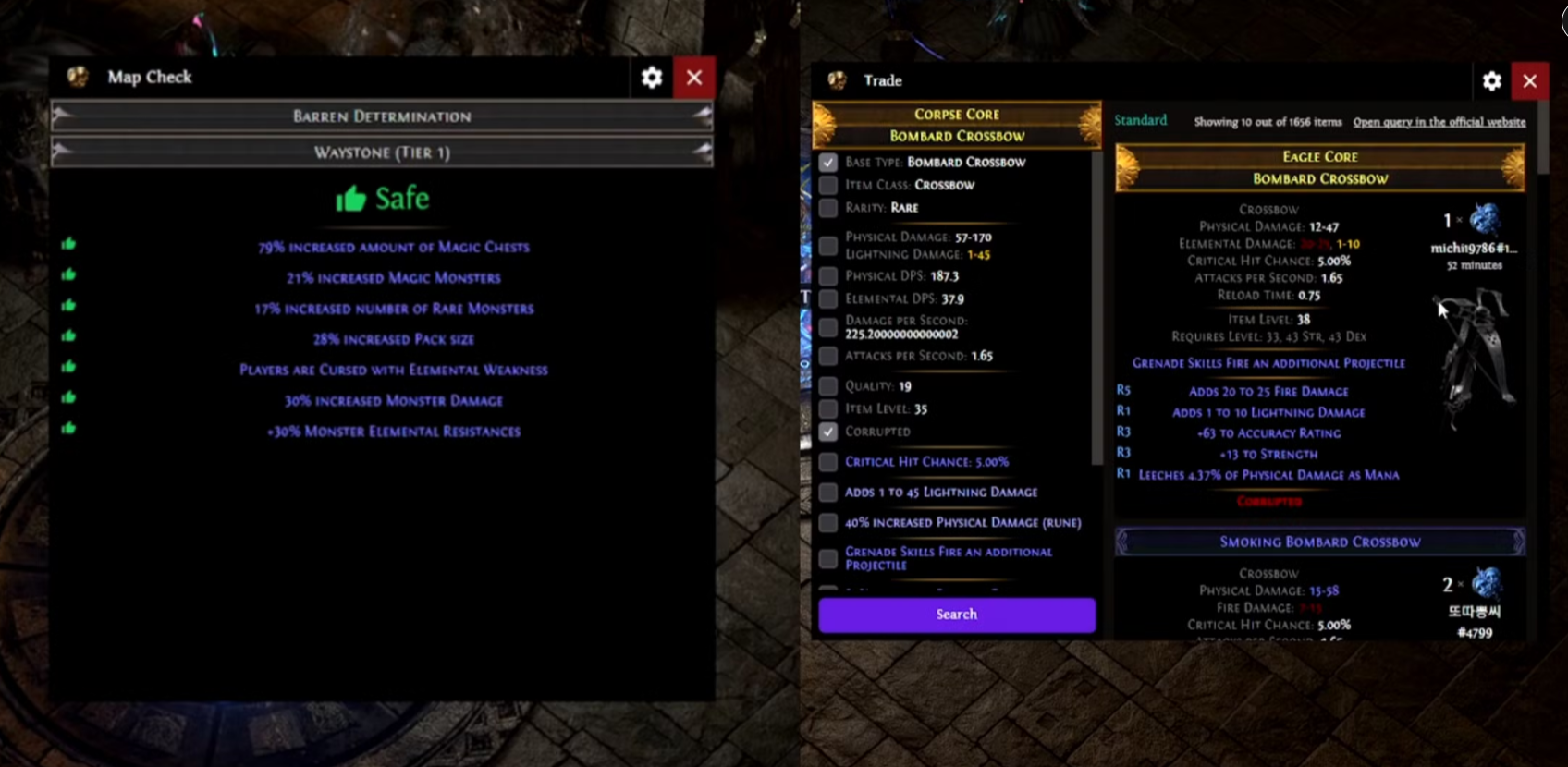 - POE Wiki 연동: 아이템 위에서 Alt + W를 누르면 해당 아이템의 상세 정보를 Wiki 페이지에서 확인할 수 있습니다.