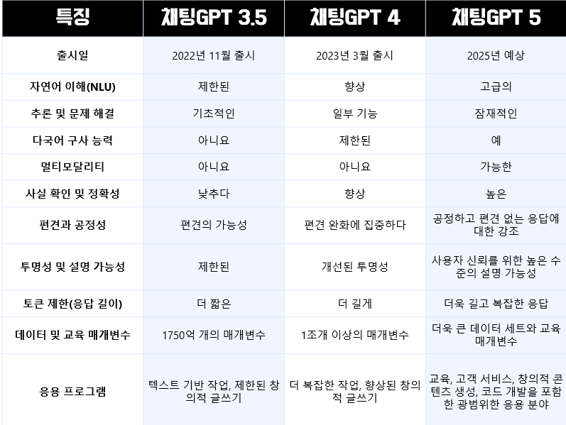 자연어 처리 능력 | 높은 수준 | 더욱 정교하고 인간적인 대화 가능 |