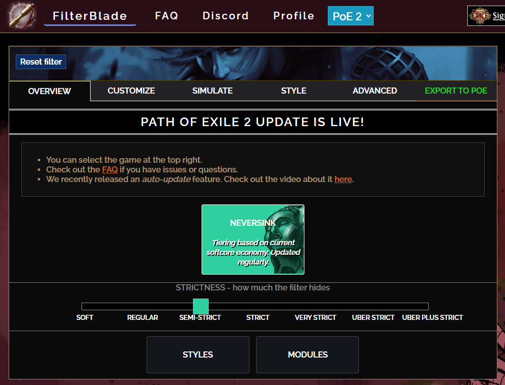 FilterBlade - PoE1&2 Filter Customizer - Finetuned for NeverSink's Filter
