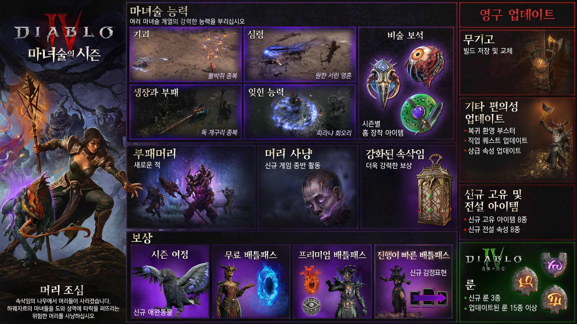 | 디아블로4 시즌7 출시일 변경점 미리보기:무기고 업데이트, 위치크래프트 출시 (0) | 2025.01.10 |