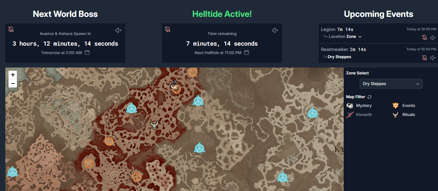- Diablo4.life에서 배틀넷 연동 후 알림을 활성화하면 이벤트 시작 시 바로 알림을 받을 수 있습니다.