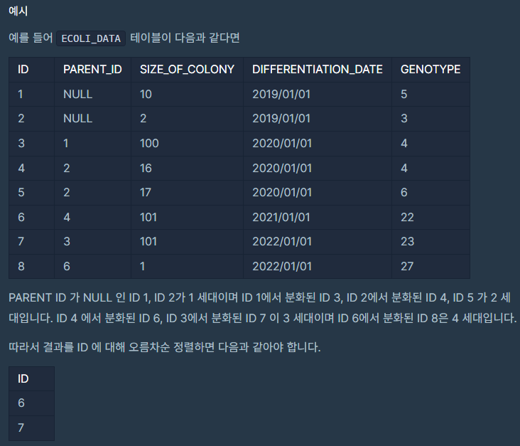 (참고) 2024.07.09 - [CS/SQL 풀이] - [SQL풀이] 프로그래머스 - 멸종위기의 대장균 찾기