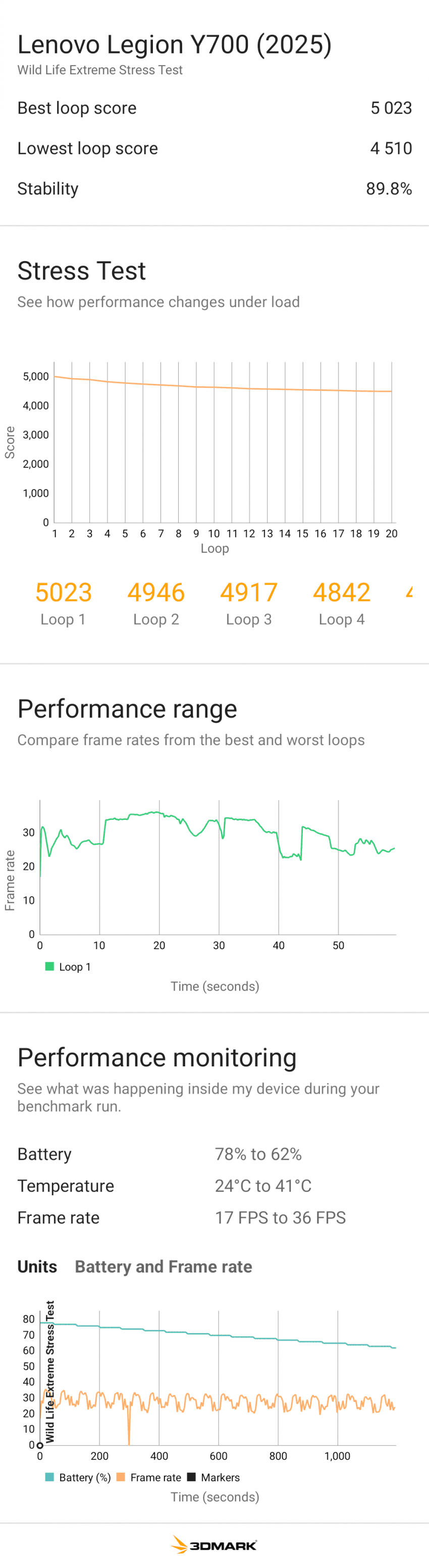 - 게임 프레임 유지력: 와일드라이프 익스트림 테스트에서 안정적인 프레임 유지.