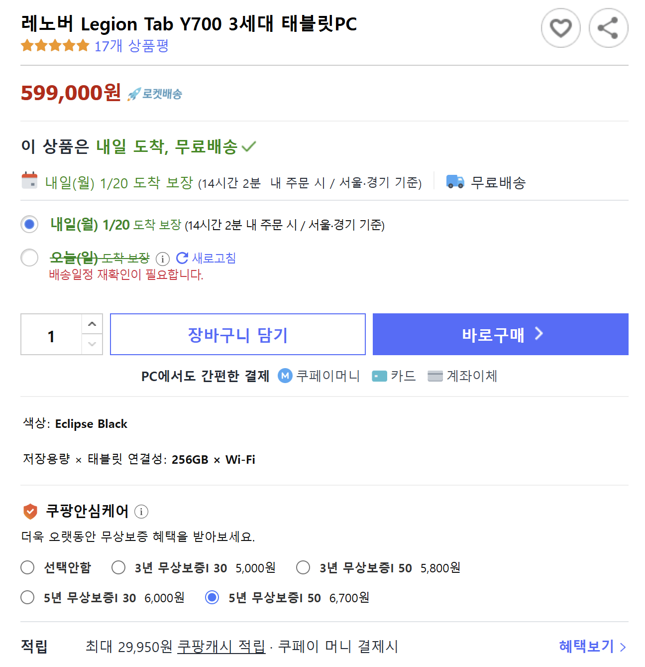 레노버 Legion Tab Y700 3세대 태블릿PC - 태블릿PC | 쿠팡