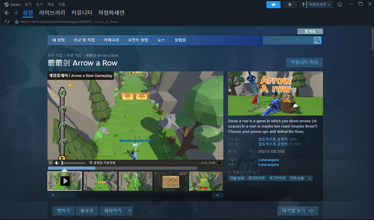 Arrow a Row는 현재 스팀에서 무료로 플레이 가능하고, 아래 링크를 통해 다운로드 후 시작 할 수 있습니다.