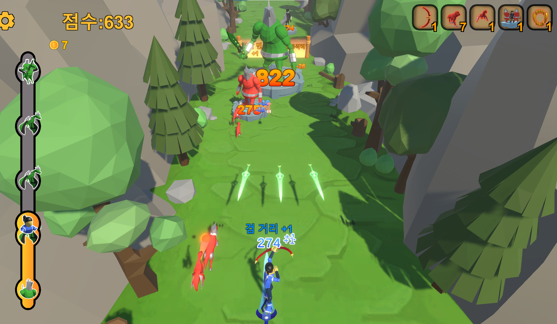 게임에 애완견, 애완용, 활, 검 등이 나오며 적절히 아이템을 먹어주면서 진행하시면 됩니다. 초반에 애완용이나 애완견이 있으면 중반까지 플레이하기가 쉬웠습니다.