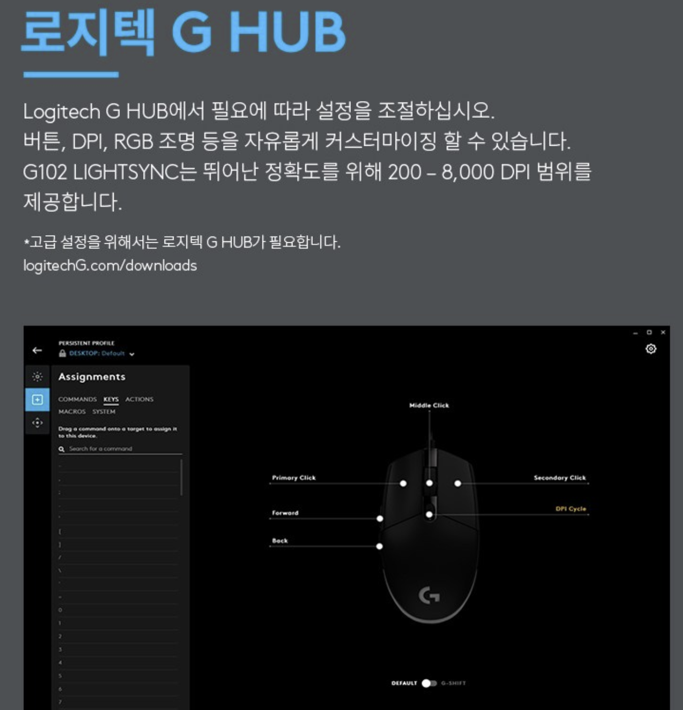 로지텍 G102는 가성비가 뛰어난 게이밍 마우스로, G Hub 소프트웨어와 함께 사용하면 다양한 매크로 기능을 설정할 수 있습니다. 이 기능은 단순 반복 클릭이 아니라, 복잡한 키 입력을 자동화하여 게임 속 작업을 훨씬 간편하게 만들어줍니다.