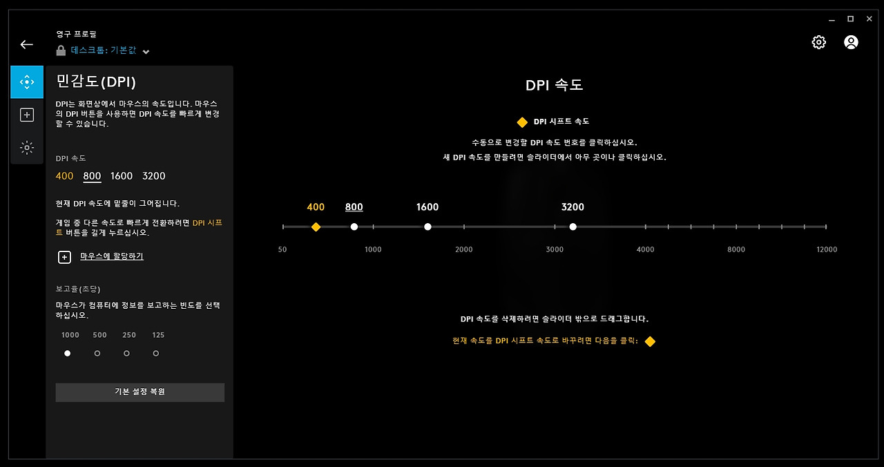 - 설치 후, 프로그램을 실행하면 PC에 연결된 로지텍 마우스를 자동으로 인식합니다.