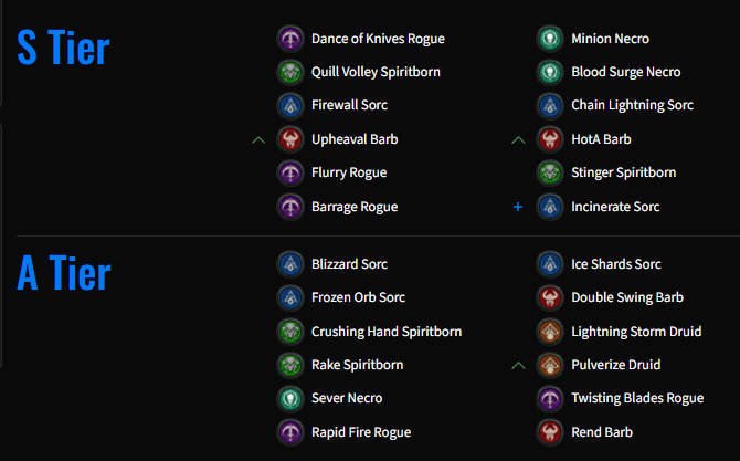 시즌7에서는 원소술사에게 몇 가지 중요한 변경 사항이 있었습니다. 레벨링 티어 S와 A티어에 무려 6개의 빌드가 올라와 있네요..!