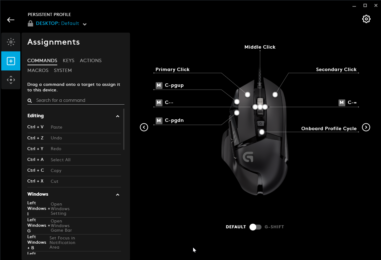 - G HUB에서 '키 할당' 메뉴를 선택합니다.