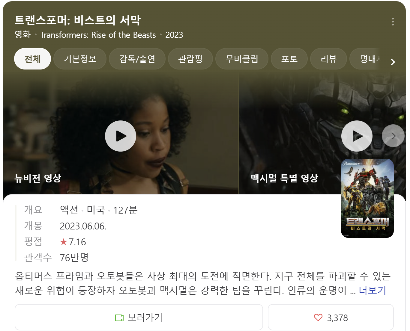 - 제목: 트랜스포머: 비스트의 서막 (Transformers: Rise of the Beasts)