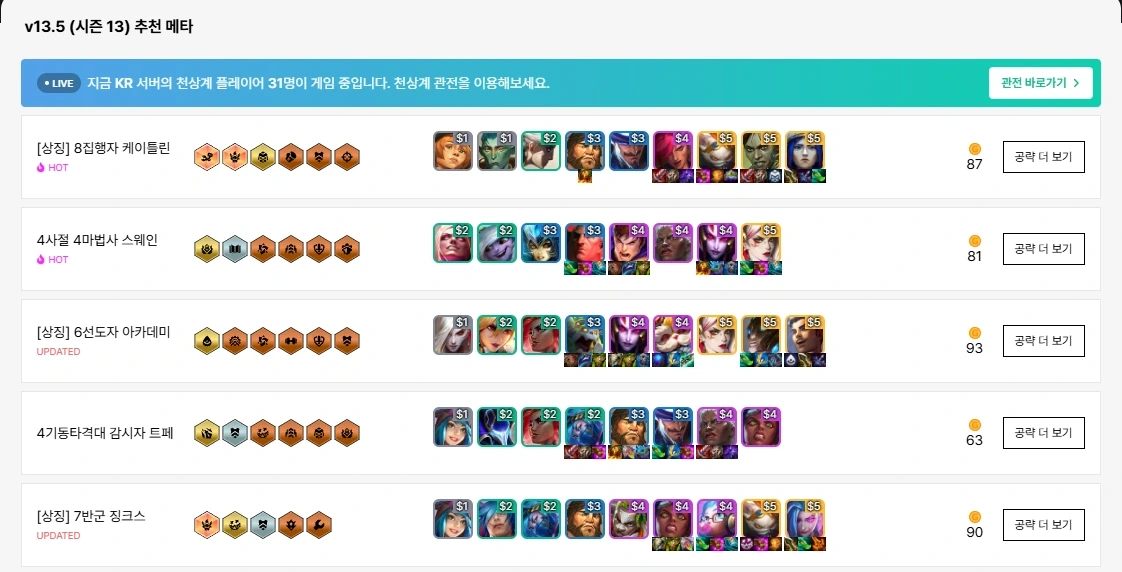 - 롤체지지에서 현재 메타 덱을 확인합니다.