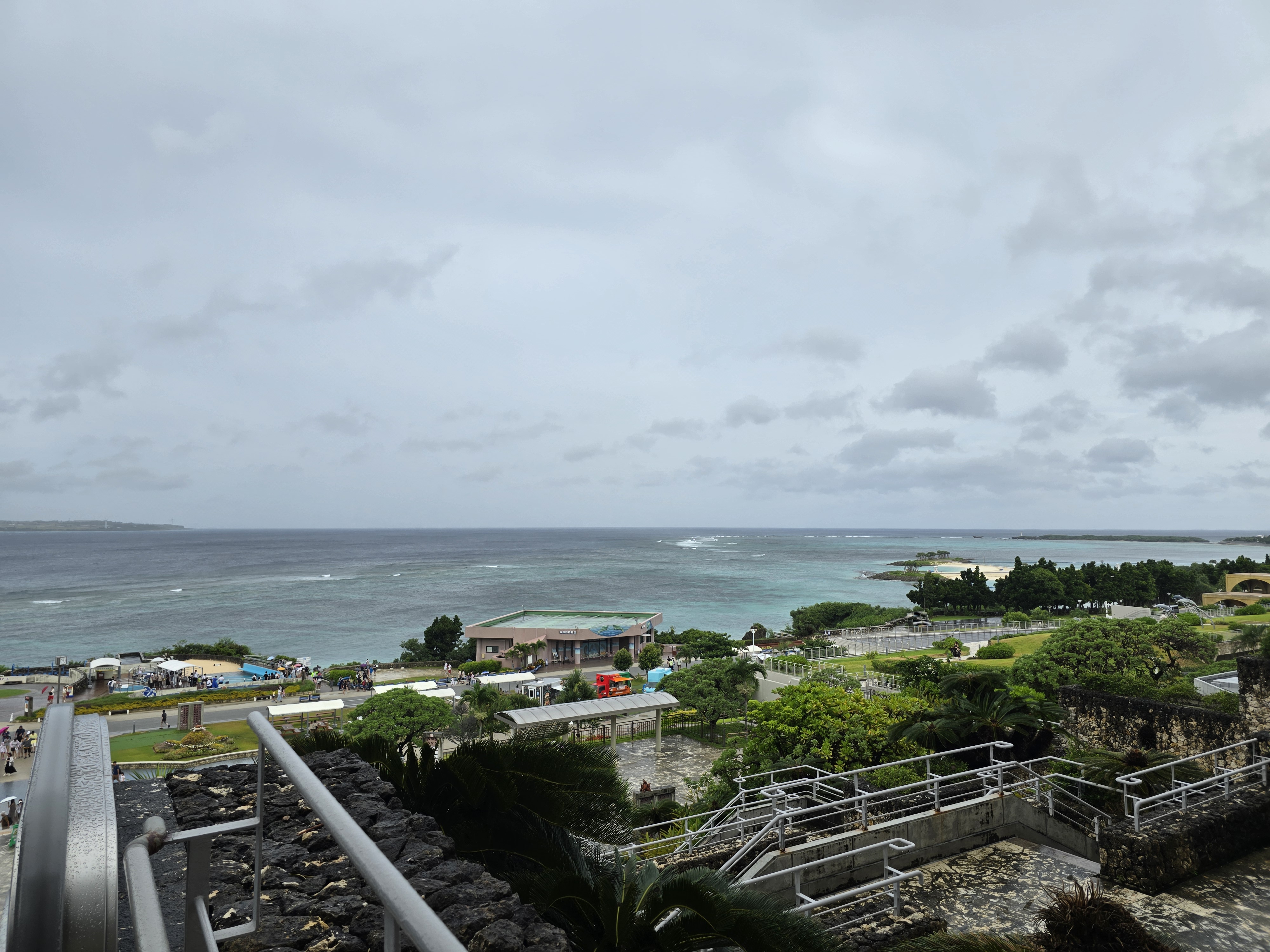 수족관 입장전 바다가 눈앞에 펼쳐지는데요.😎 아직 하늘이 흐리긴해도 에메랄드빛 바다를 보고나면 마음이 한결 편안해졌습니다.