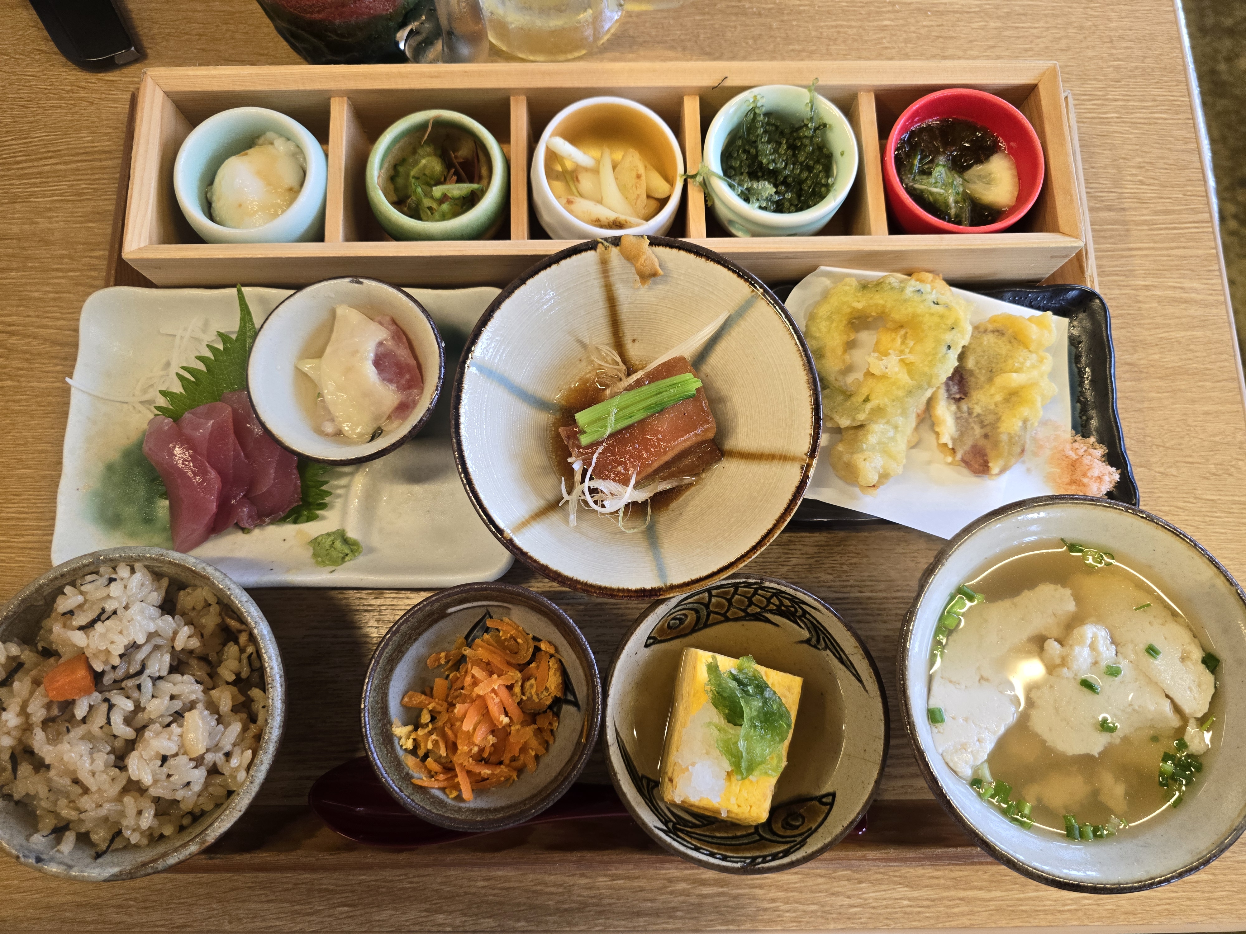 저 작은 포도알 같은 건 살짝 짭쪼름한 해조류로 오키나와에서 많이 먹는 반찬이라고 합니다!