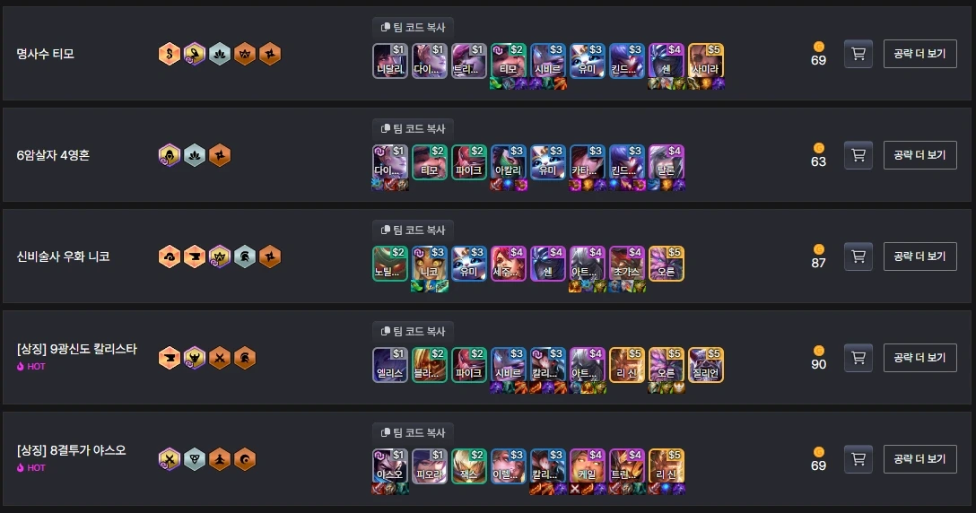 추천 덱 메타 빌드 - 롤체지지 - 전략적 팀 전투 TFT - 롤토체스 전적검색