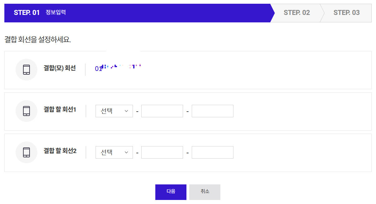 (참고) 웹사이트에서는 아래 화면처럼 진행이 불가능하니 시간 낭비하지마시구 전화로 가입하세요~ (SKT단말기:114)