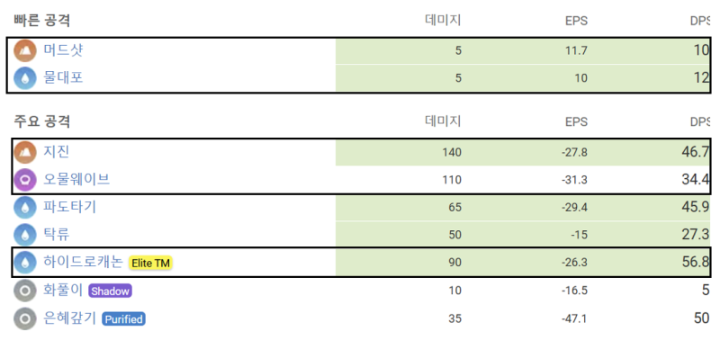 | 노말 스킬 | 머드샷, 물대포 | |