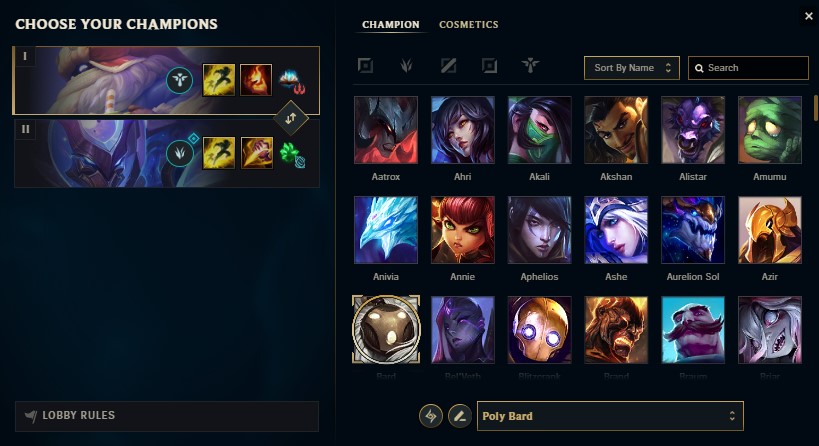 | 챔피언 선택 | 주/부 포지션에 동일 챔피언 선택 가능 | 동일 챔피언 중복 선택 불가능 |