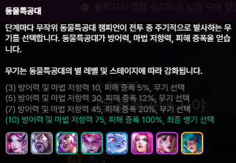 운좋게 증강에서 동물특공대 상징 2개가 떠서 10개 시너지를 달성했네요!