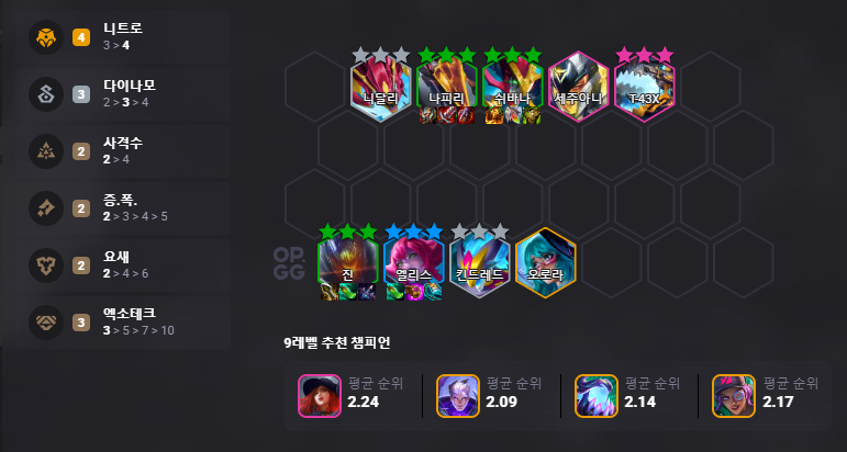 - 진을 추가해 사격수 시너지를 강화하고, 오로라를 통해 다이나모 시너지를 더하세요.