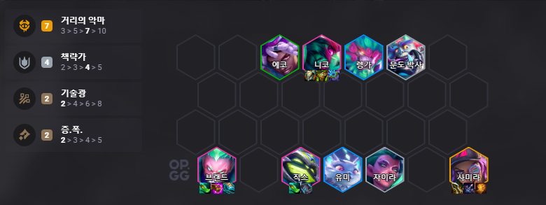 추천 시너지: 7 거리의 악마 + 4책략가