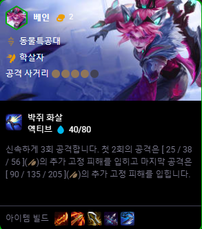 공격 속도를 증가시켜 베인의 DPS를 극대화합니다.