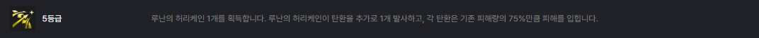베인의 딜링이 중요한데, 5등급으로 루난 광역딜을 증가 시킬 수 있습니다.