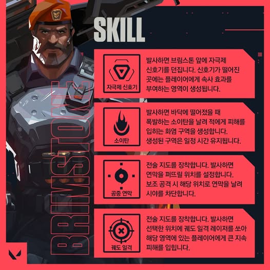 - 브림스톤/오멘: 연막은 팀이 진입하거나 방어할 때 꼭 사용!