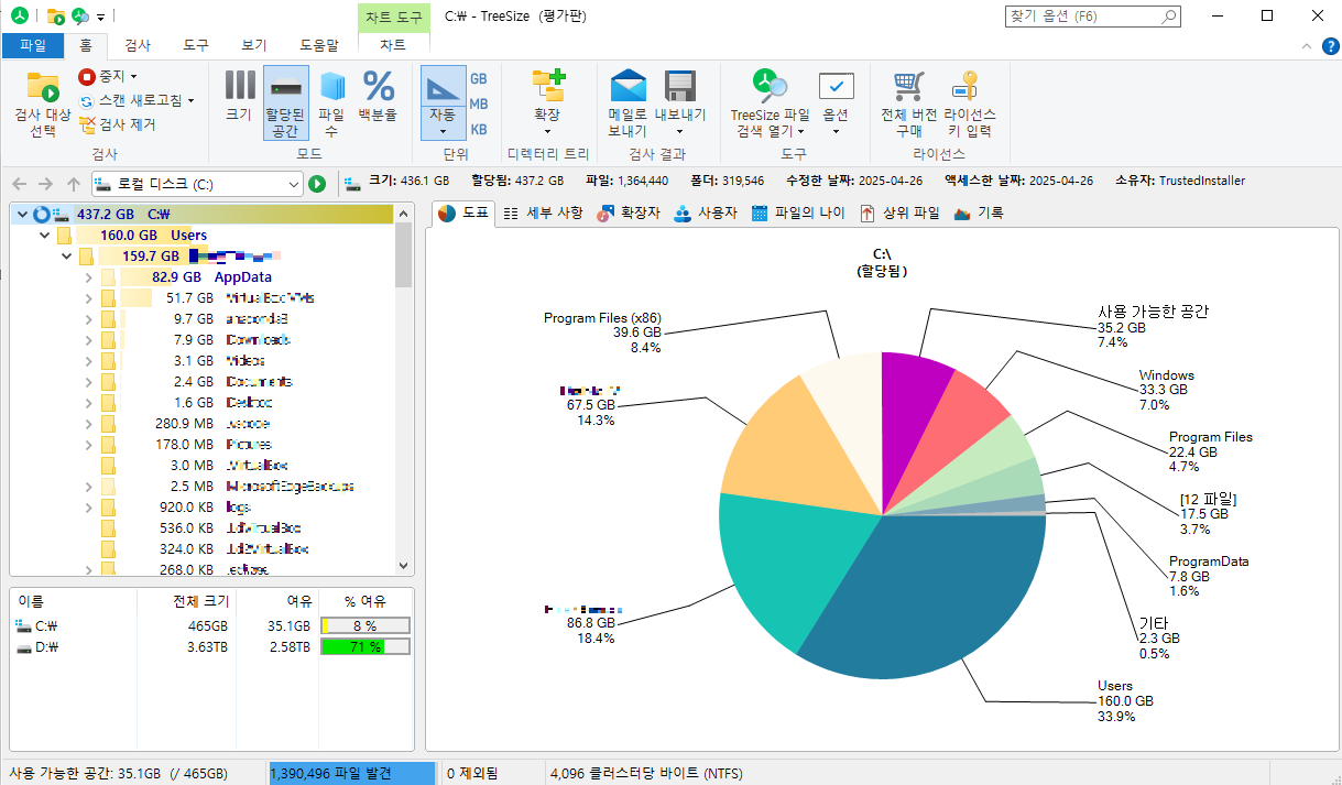 C드라이브 용량 부족, TreeSize로 정리하는 방법!