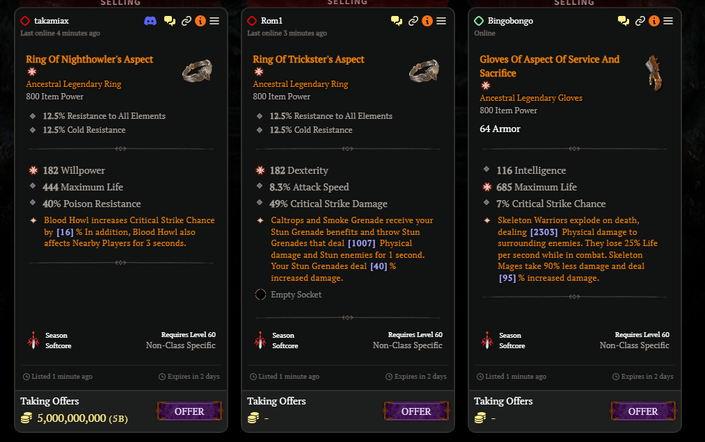 - 디아블로 트레이드(해외, diablo.trade) : 해외 사이트, 영어로 플레이 필요, 유저 많음