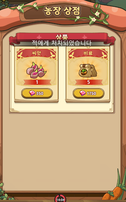2순위 : 버섯농장 - 씨앗, 비료 구매
