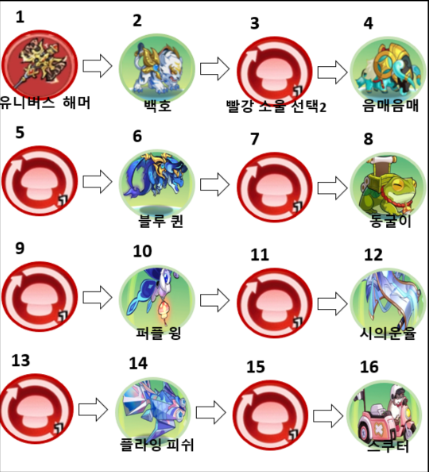 - 4순위: 블루퀸, 동굴이, 퍼플윙 (상황에 따라 선택)