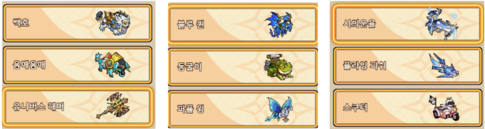 | 2주차 | 백호 (고급 탈것) |