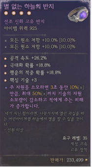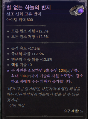 별 없는 하늘의 반지와 함께 드랍되는 신화 고유 아이템
