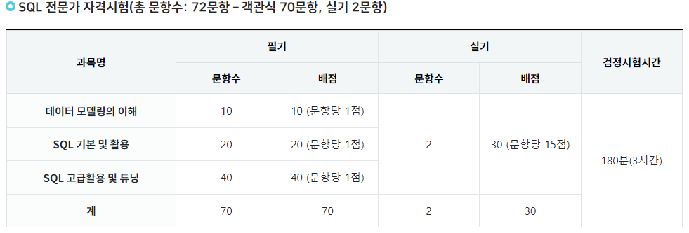 국가공인 자격증으로 SQLD 보다는 보다 실무에 가깝고 심화된 내용들을 다루는 시험입니다.