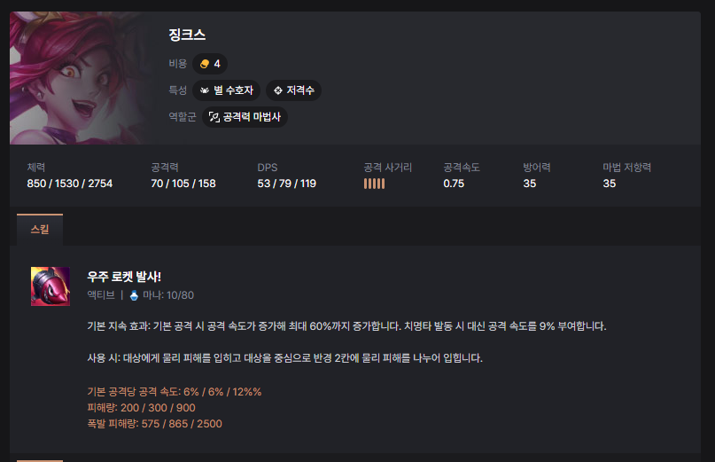 | 주요 챔피언 | 징크스, 자야, 뽀삐, 렐, 아리, 세라핀, 신드라, 니코 |
