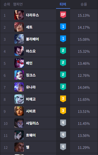 - 다리우스 : 피흡도 되는 좋은 딜탱입니다.