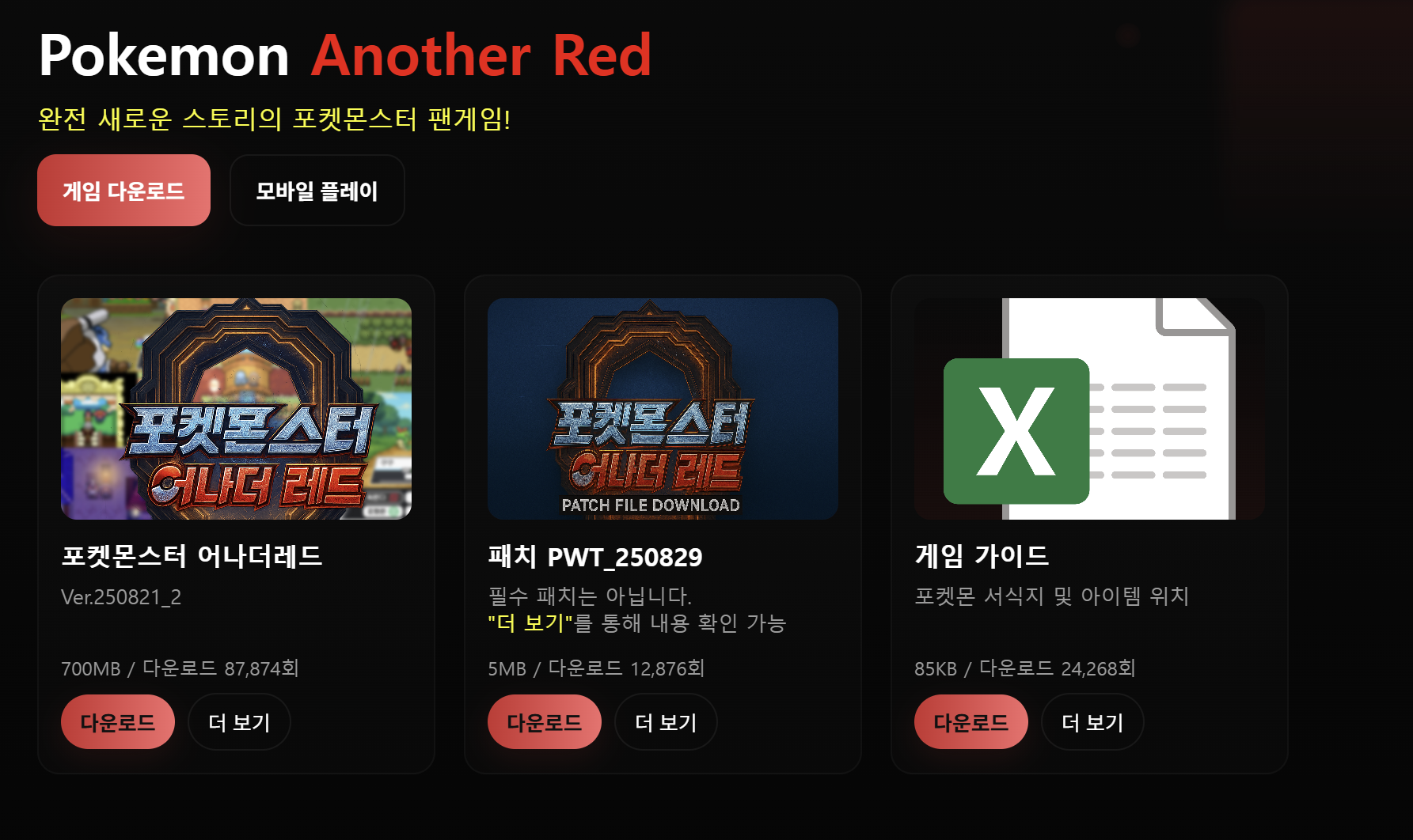 포켓몬스터 어나더레드는 공식 신작이 아니라서, 반드시 신뢰할 수 있는 커뮤니티에서만 파일을 받으셔야 합니다. 불법적인 경로나 무분별한 다운로드는 PC/모바일 보안을 위해 금지해 주세요.