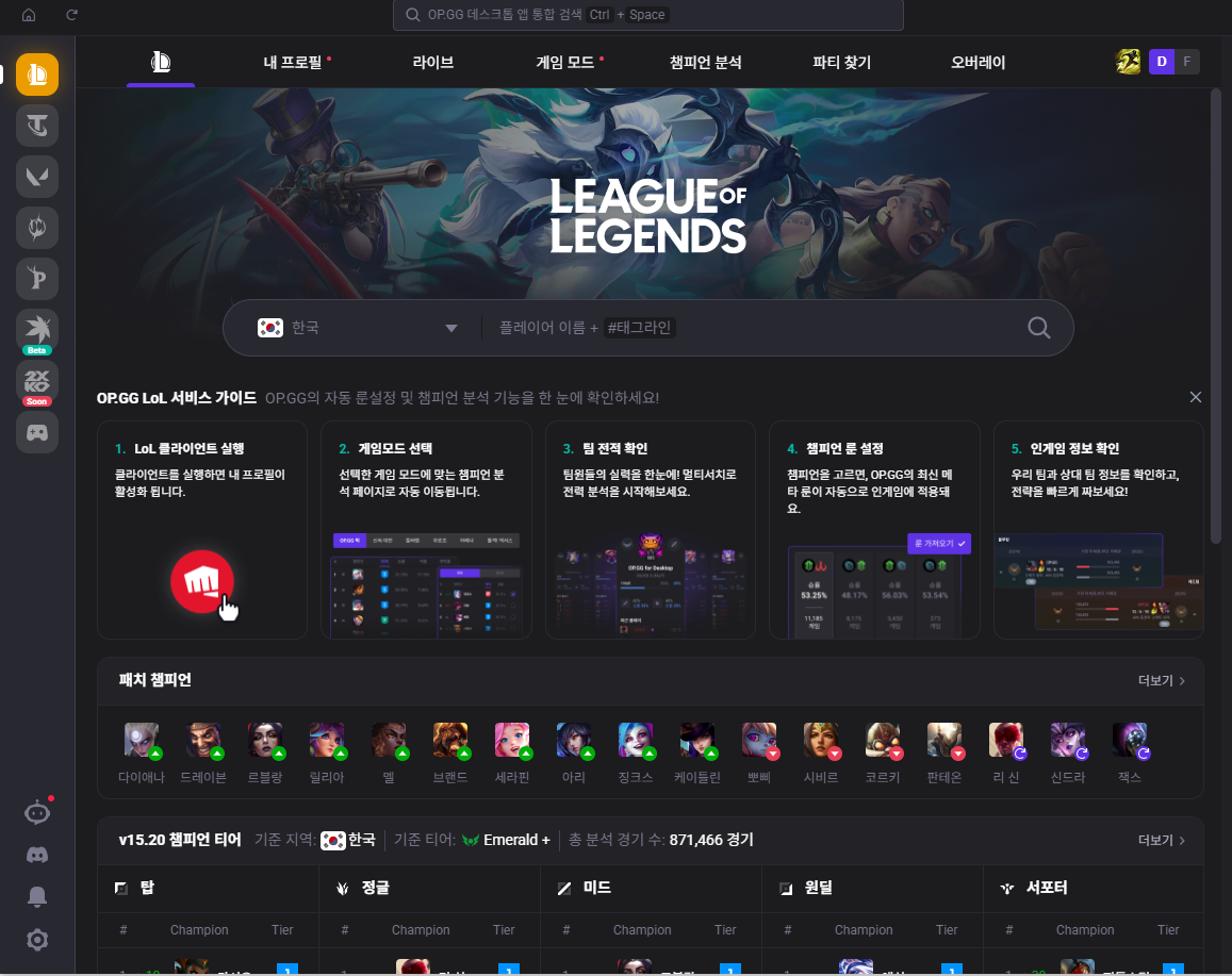 - 짠! 마법처럼 화면을 가리던 OP.GG 창이 사라졌을 거예요. 이제 라이엇 클라이언트를 다시 실행하고 게임을 즐기시면 됩니다.