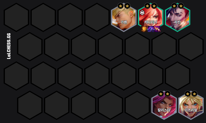 이론은 충분히 알았으니, 이제 실제 게임에서 어떤 그림을 그려야 할지 알아볼까요? 카타리나와 라칸 3성작을 마친 후 8레벨에 완성할 수 있는 이상적인 최종 조합 예시입니다.