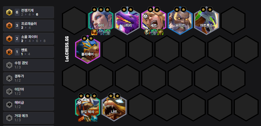시너지: 6 전쟁기계, 3 프로레슬러, 2 소울 파이터, 1 멘토