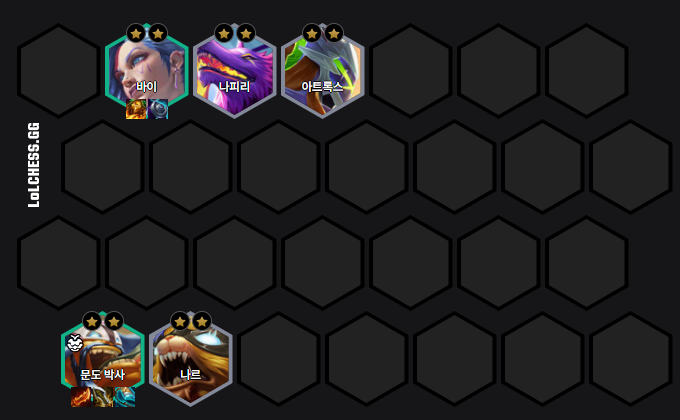 - 앞라인: 바이(3성), 세트, 우디르, 볼리베어, 나르, 아트록스