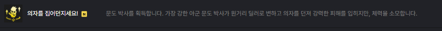 | 문도 박사 (메인 딜러) | 구인수의 격노검, 무한의 대검, 타격대의 철퇴 | 거인 학살자, 저격수의 집중(유물), 생선대가리(유물) |