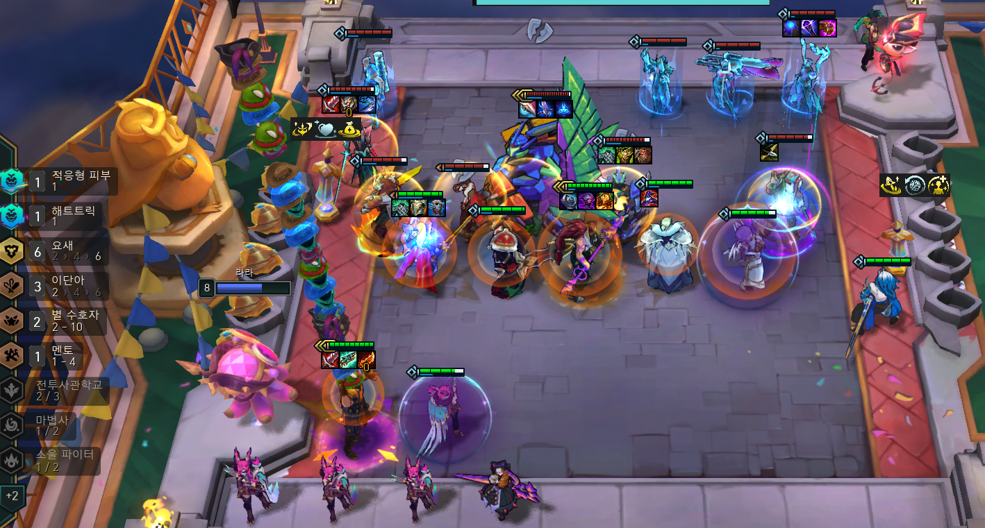 - 5-2 이후 (8레벨 이상): 8레벨을 찍고 최종 조합을 완성합니다. 이후 골드 여유가 된다면 9, 10레벨을 보며 전설 챔피언을 추가해 덱 파워를 극대화합니다.