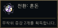 | 혼돈의 변성 (Transmute: Chaos) | 현재 제시된 증강 제외 무작위 증강 2개 획득 (실버 30%, 골드 70%). | 무작위 |