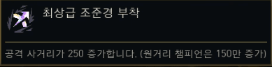 | 긴 사거리 무기 (Scopier Weapons) | 공격 사거리 증가 (+200 원거리 / +100 근거리). | 사거리 |