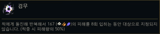 | 무딘 힘 (Blunt Force) | 공격력 +15%. | AD 능력치 |